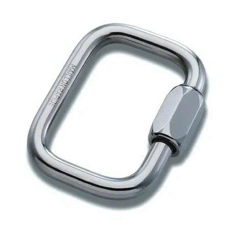 Maillon rapide carré inox 6 mm pour liaison parachute de secours – sellette