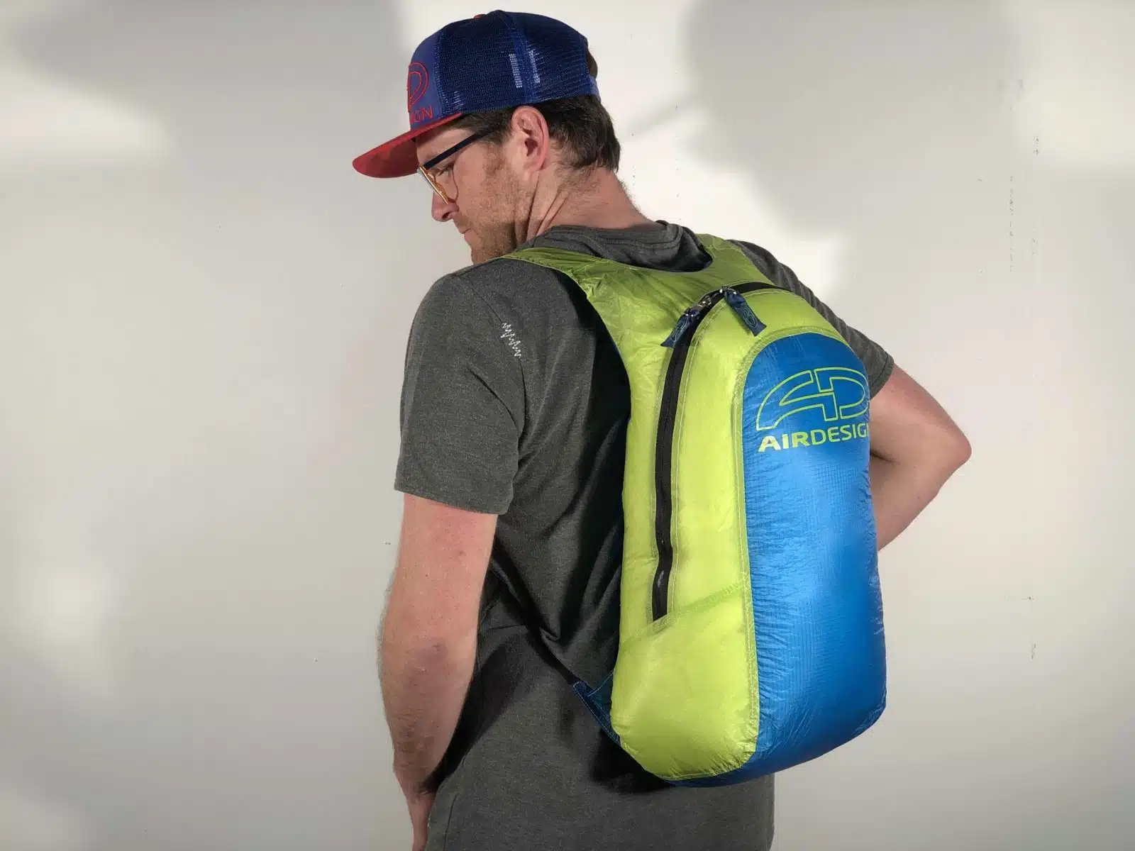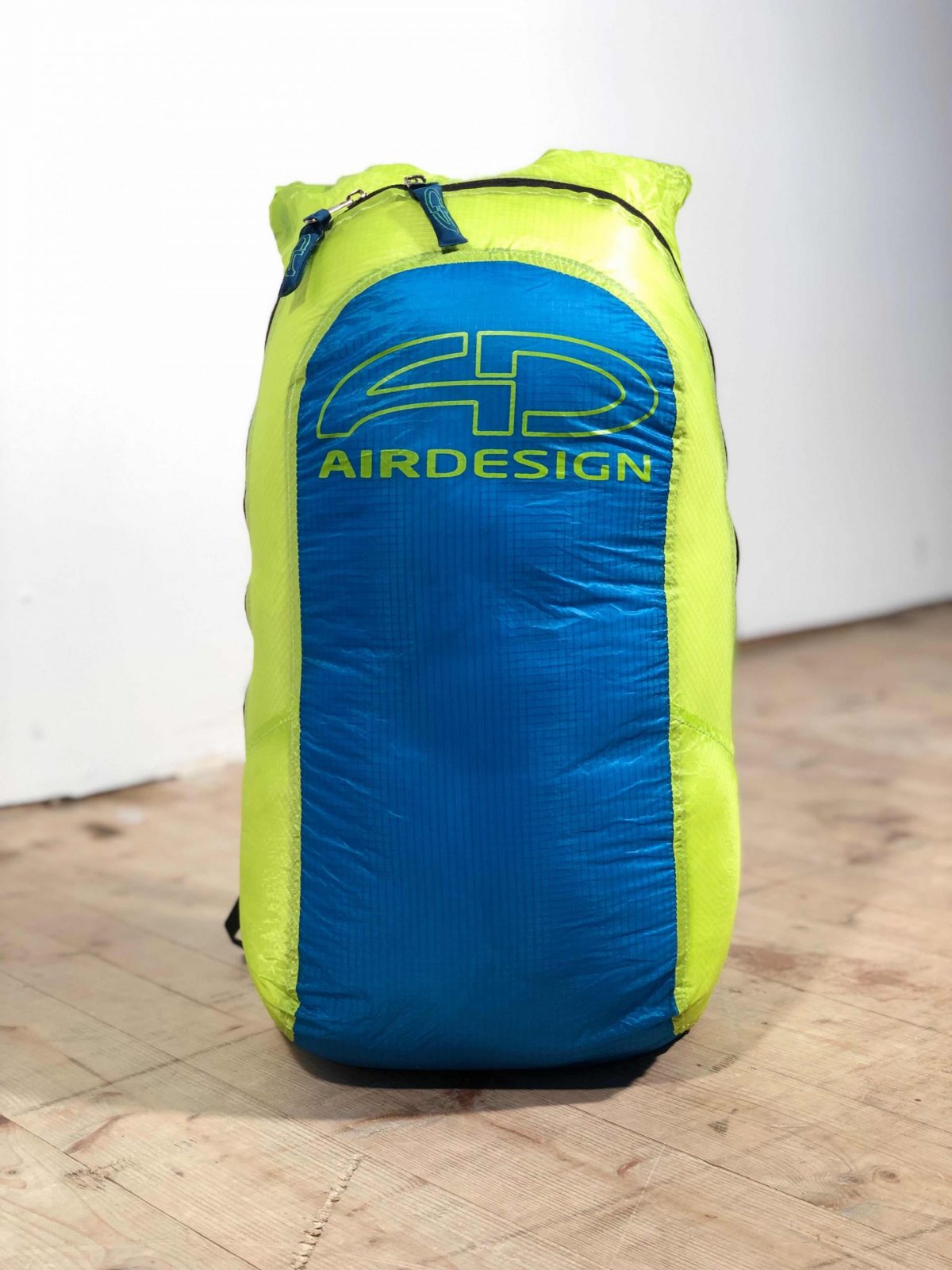 Le AirDesign DayBag est un sac ultra-léger de 80g. Du haut de ses 18 litres, vous y rentrerez aisément votre UFO, ou votre SuSi bien pliée (roulée sans AirPack 50/50) avec une sellette string et même un casque selon la taille de l’aile SuperLight que vous y mettez ! Repliable sur lui-même, vous pouvez aussi le laisser dans le fond du coffre de votre voiture et vous en servir pour mettre vos courses, ou tout ce qui peut vous passer par la tête !