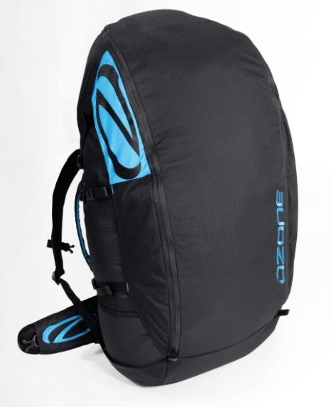 Le sac à dos Ozone standard. Grand volume de rangement, nombreuses poches de rangement pratiques et excellent confort sur le dos, avec sangle de compression pour maintenir le parapente et le harnais en place.
