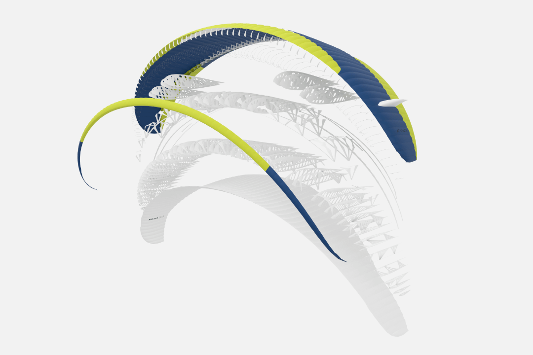 Les Mini Ribs en nitinol placés en bord d'attaque permettent à la voile de garder une forme précise dans cet endroit critique pour la mécanique des fluides. Les résultats des calculs détaillés sur l’effet des Mini Ribs émontrent une fidélité optimale du profil dans toutes les conditions de vol.