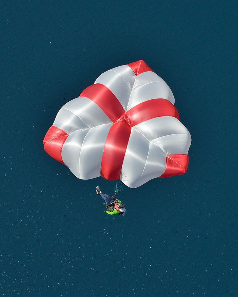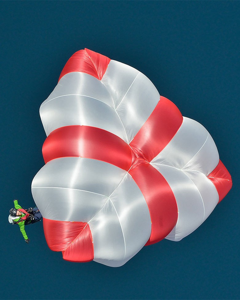 Parachute de secours révolutionnaire, ultra léger et offrant une stabilité pendulaire exceptionnelle.
