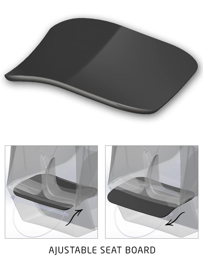 - Planchette réglable en longueur : s'adapte parfaitement à toutes les longueurs de jambes.
