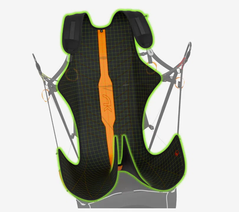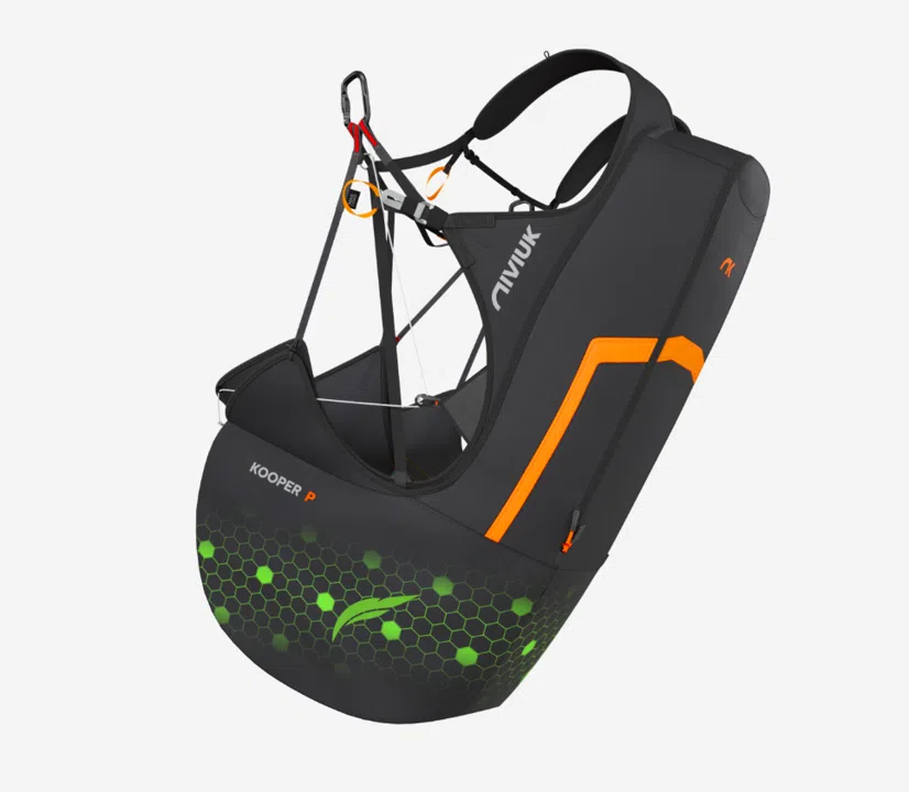 La structure de la Kooper P est modélisée en 3D pour maximiser l’ergonomie. Les cuissardes séparées assurent une stabilité et un confort optimaux en vol. Le design du dos a été optimisé, intégrant une mousse compacte pour offrir un excellent maintien. Ce design permet une liberté de mouvement accrue et un ajustement naturel à la morphologie du pilote.