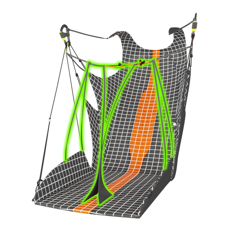 Le cocon le plus léger de sa catégorie. À partir de 1,67 Kg en taille S, la sellette cocon Niviuk ARROW P vous amènera loin tout en restant stable et très confortable !