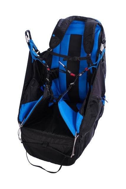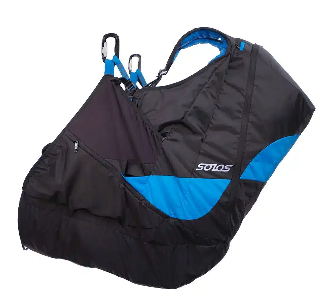 La SOLOS est une sellette réversible légère et techniquement très complète. Elle convient parfaitement aux pilotes de tous niveaux.
